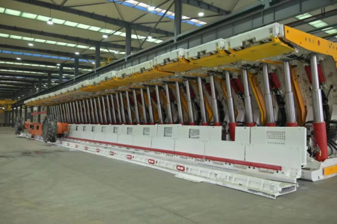 “大家一定要充分發(fā)揮利用好現(xiàn)有資源和團隊優(yōu)勢,在解決‘卡脖子’技術(shù)難題方面取得更多更大突破。”中盤重工公司領導班子到基層調(diào)查研究時直面問題所在。中盤重工公司始終秉承“讓復雜地質(zhì)的煤礦更安全更高效開采”的企業(yè)使命,在大傾角、急傾斜液壓支架和刮板輸送機核心技術(shù)研發(fā)方面持續(xù)發(fā)力,研制的ZY6800/21/45J型急傾斜液壓支架,中心距1.75米,最大采高4.2米,是急傾斜中厚煤層機械化開采技術(shù)的新突破,2023年12月5日實施了三機聯(lián)調(diào)聯(lián)試,獲得礦方高度認可。液壓支架突破了在最大傾角52度、最大采高4.2米的高效防倒防滑和安全防護,技術(shù)達到國內(nèi)先進水平。與該支架配套的SGZ800系列刮板輸送機,是公司首臺套800系列刮板輸送機,應用于急傾斜采面尚屬首例,輸送機采用無鏈、無驅(qū)動結(jié)構(gòu)形式,應用傾斜工作面的自然條件,實現(xiàn)煤的自溜運輸。